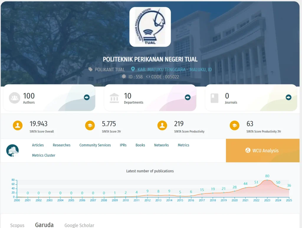 Jumlah karya ilmiah yang terekognisi secara nasional di Sinta, mencakup artikel pada jurnal terakreditasi dan nasional yang menjadi sumber data utama SINTA, dengan total mencapai 388 artikel hingga tahun 2025.