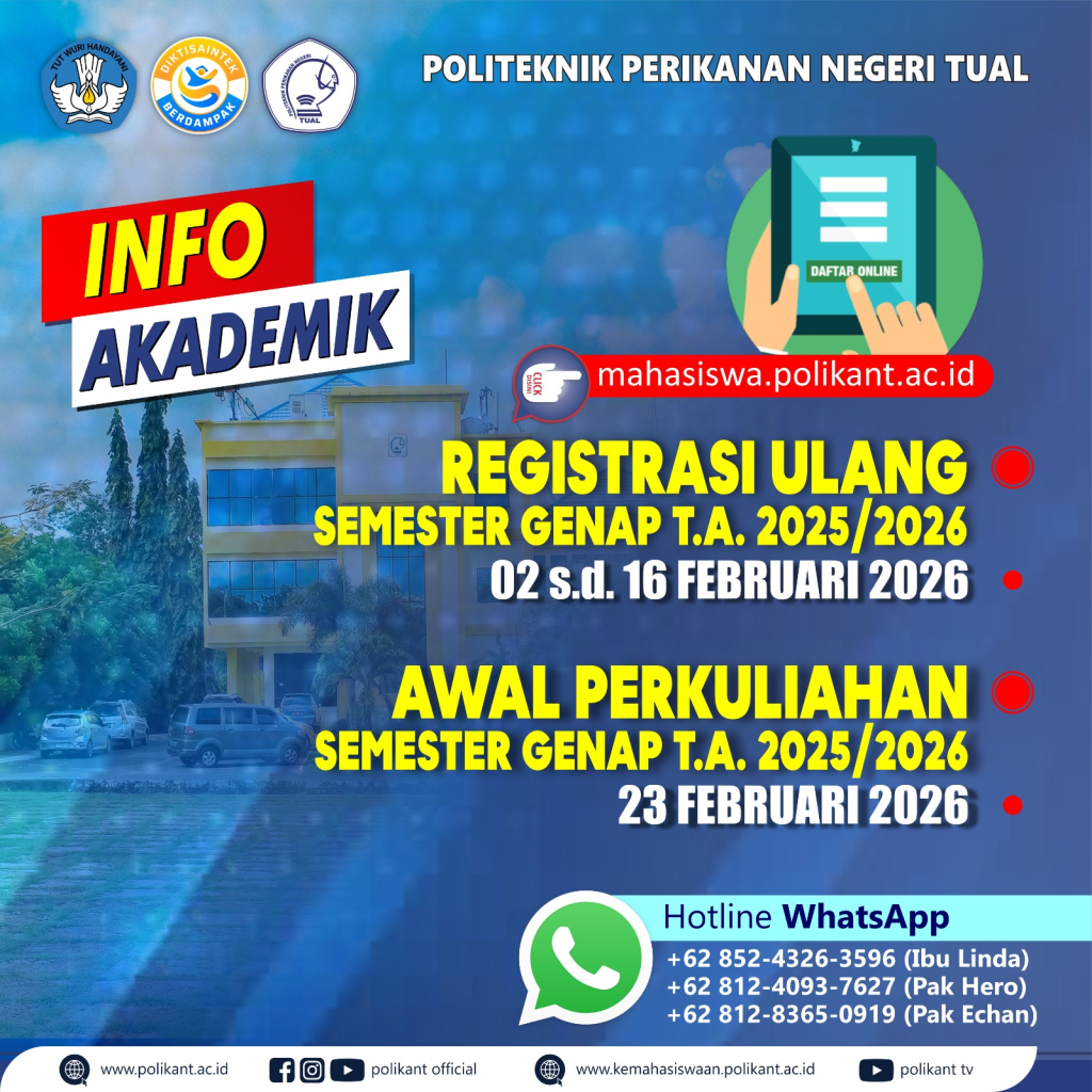 Halo Sobat Bahari! Politeknik Perikanan Negeri Tual (Polikant) kembali memanggil putra-putri terbaik